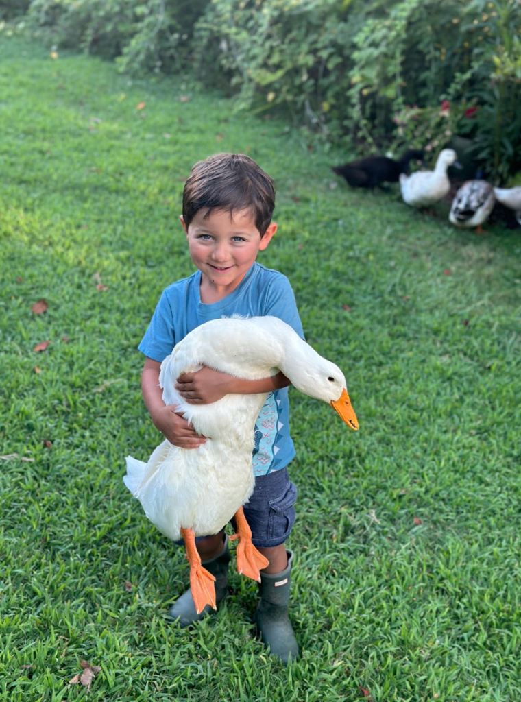 We’re a husband-and-wife team with a four-year-old son, 11 ducks, and one cat living on an organic, urban micro-farm/homestead in Greenville, South Carolina.