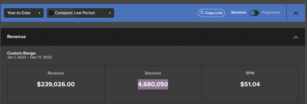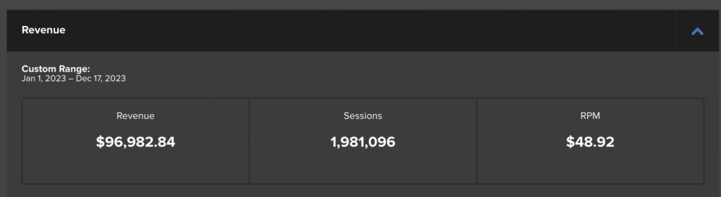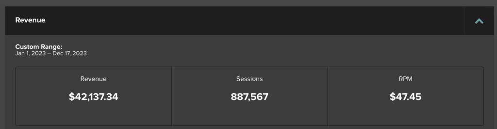 I don’t really evaluate each blog on how much it makes since I run 4 (perhaps I should!) but according to Mediavine, here is a breakdown for 2023.